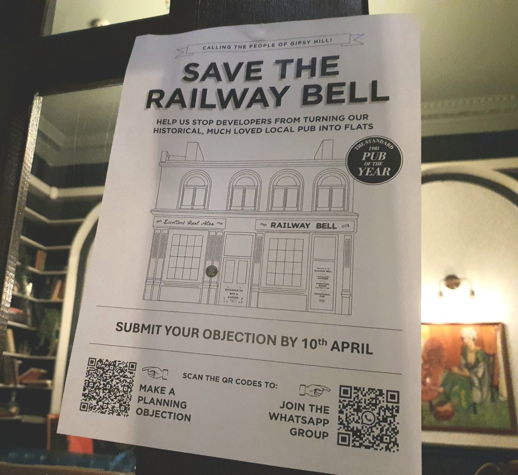Help the local community and Friends of the Railway Bell, stop developers from turning our historical, much loved local pub and becoming 3 storey high, with nine 1-bedroom flats, and infilled on all three sides.